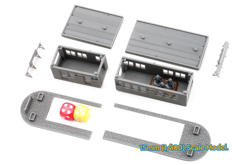 Bitte beachten Sie, dass alle Teile unbemalt und ungrundiert geliefert werden. Ich stelle jedoch sicher, dass sie vor dem Versand gereinigt werden. Es können noch kleine Fasern vorhanden sein. Die Gebäude sind entweder in Grau oder Schwarz erhältlich und in drei Maßstäben verfügbar: 15 mm, 20 mm und 28 mm.