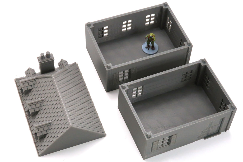 Sie möchten Ihr WW2 Europa-Gelände mit hochdetaillierten Gebäuden für Tabletop-Kriegsspiele wie Flames of War, Bolt Action oder Chain of Command erweitern. Inspiriert von der kleinen Stadt Sainte-Mère-Église in der Normandie im Jahr 1944. Das Gebäude ist nicht unbedingt eine 100-prozentige Nachbildung, siehe das Bild, das als Inspirationsquelle dient.