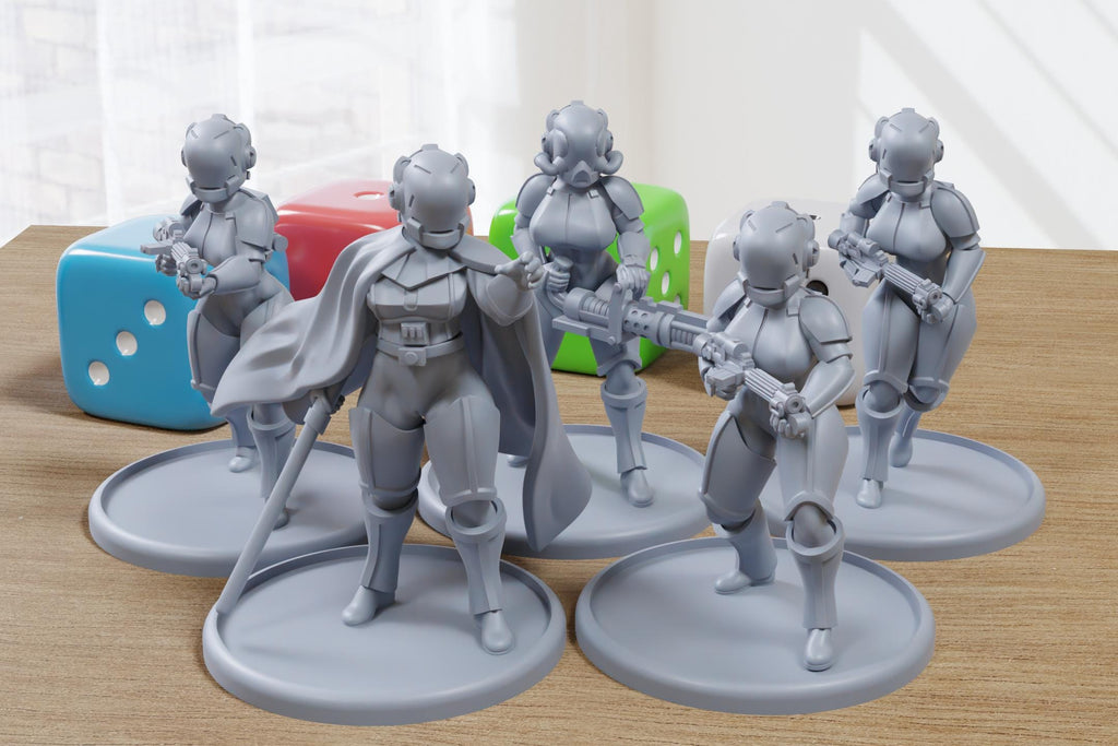 Bringen Sie mit dem Hurrican Troopers Squad B eine neue, mutige Note in Ihre Tabletop-Schlachten – eine beeindruckende, rein weibliche Einheit einsatzbereiter Sci-Fi-Soldaten! Dieses fünfteilige Set enthält eine dynamische Truppe schwer bewaffneter Soldaten in stilisierter Powerrüstung, die alle kampfbereit und voller Charakter sind.