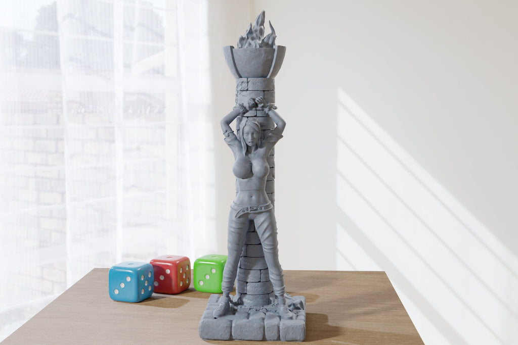 Sie ist eine starke und schöne Kriegerkönigin, aber bei einem Überfall wurde sie von einem bösen Dämon überrascht und in den Tiefen des Infernos an eine alte Säule gefesselt. Werden die Helden sie retten können?