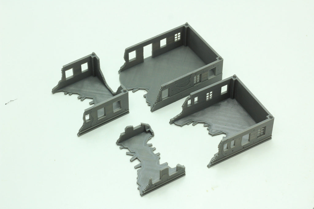 Alle Gebäude sind unbemalt und nicht grundiert. Ich mache die Reinigung, aber möglicherweise sind noch einige winzige Fasern vorhanden. Es kann in Grau oder Schwarz erhältlich sein. Jedes Gebäude besteht aus stapelbaren Abschnitten, wie in den Bildern gezeigt.