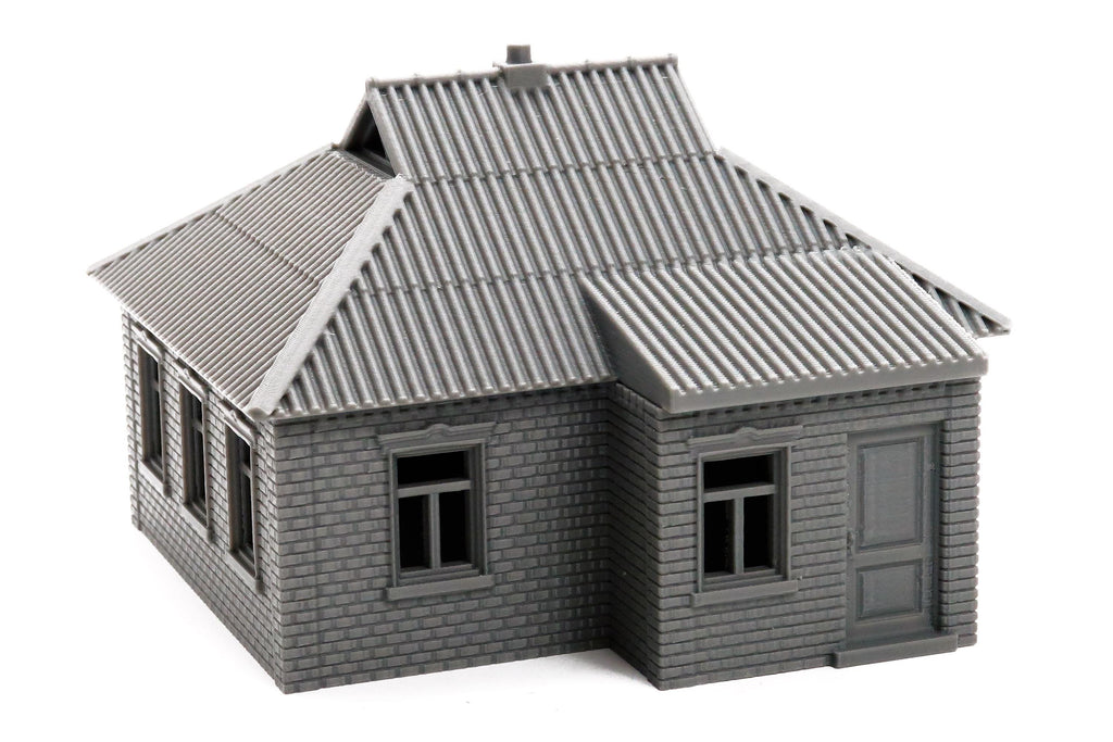 Dieses Gebäude ist auch im Maßstab 1:87 HO erhältlich, ideal für Modelleisenbahnsammler. Beachten Sie, dass die Struktur unbemalt geliefert wird.