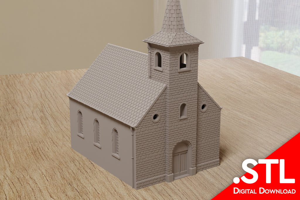 Maquette 3D détaillée de la chapelle Sainte-Barbe de Foy, imprimable et idéale pour les scénarios de bataille des Ardennes, des Ardennes et d'escarmouches de la Seconde Guerre mondiale. Toit amovible et accès intérieur pour une immersion totale. Parfaite comme pièce maîtresse ou objectif stratégique pour Bolt Action, Chain of Command ou les jeux de guerre historiques à l'échelle 28 mm.