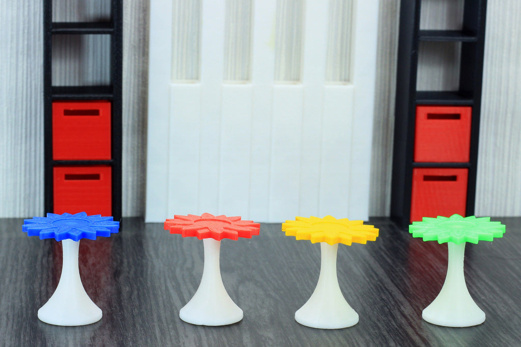 Cette table d'appoint colorée en forme de tournesol est indispensable dans la décoration de votre maison de poupée moderne.