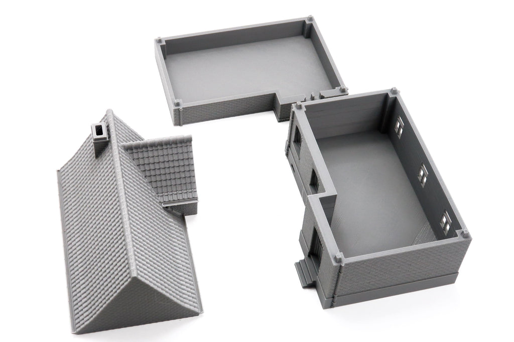 Veuillez noter que toutes les pièces sont livrées non peintes et non apprêtées, bien que je m'assure qu'elles soient nettoyées avant l'expédition. Il peut rester quelques petites fibres. Les bâtiments sont disponibles en gris ou en noir et en trois échelles : 15 mm, 20 mm et 28 mm.