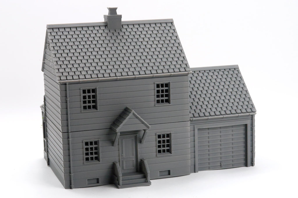 American Suburban House DS-02 with Garage - 3D Printed Miniature Wargaming Terrain