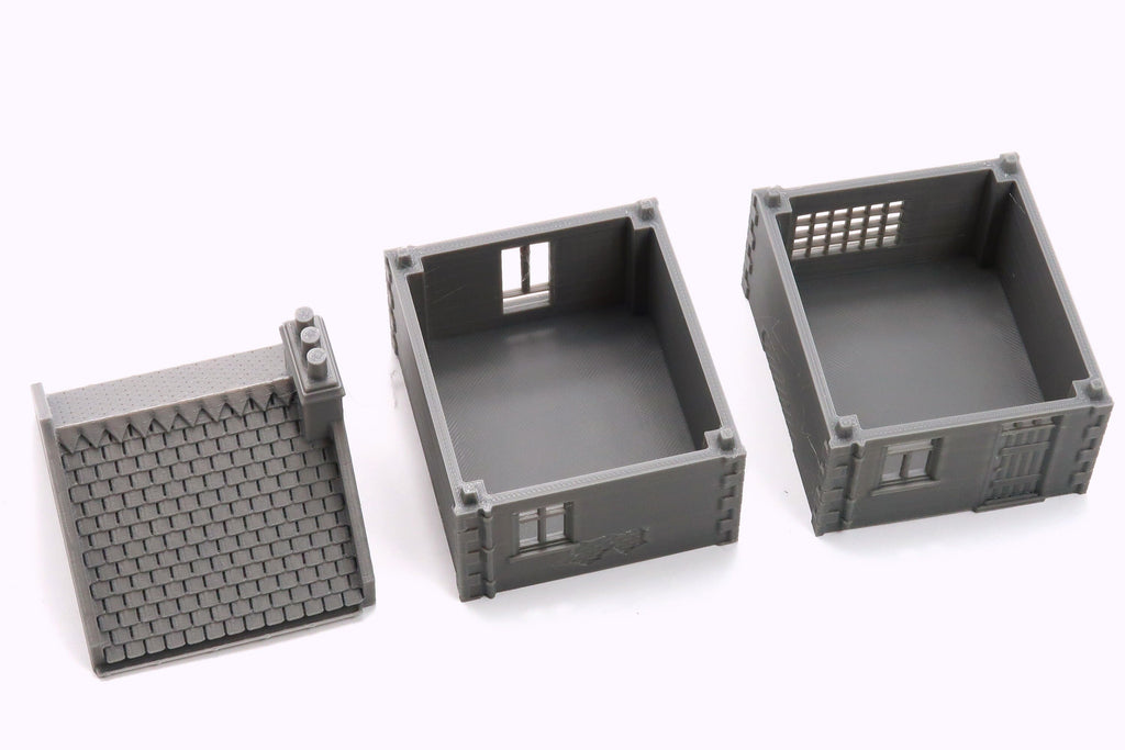 All buildings are unpainted and unprimed. I do the cleanup, but some tiny fibers may still be present. It may come in grey or black. Each building is created from stackable sections as shown in the images.