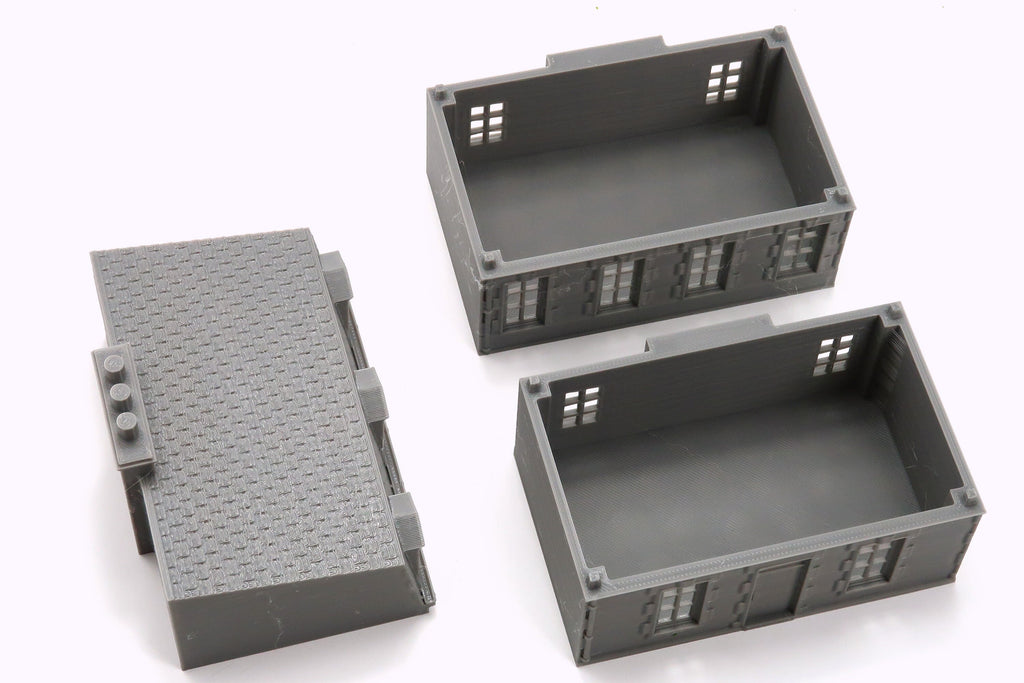 Please note that all parts come unpainted and unprimed, though I ensure they are cleaned up before shipping. Some small fibers may still be present. Buildings come in either grey or black, and are available in three scales: 15mm, 20mm, and 28mm.