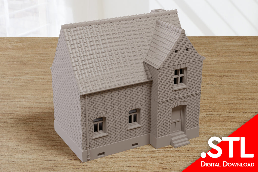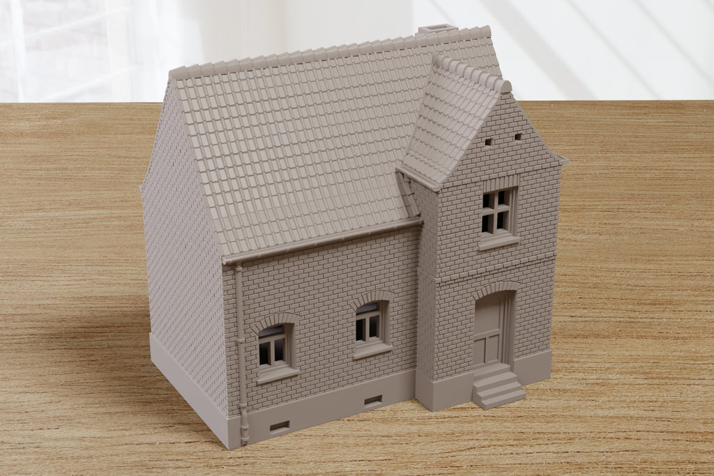 This model includes crisp brick textures, distinct window frames, and realistic roof tiles—ideal for painting and weathering to match your tabletop theme.