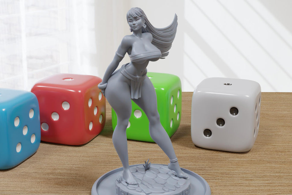 Meet Tika, the graceful jungle dancer whose movements echo ancient rhythms and wild winds. With a flowing pose, confident curves, and tribal-chic attire, she’s a perfect centerpiece for fantasy RPG campaigns, painting collections, or exotic dioramas.