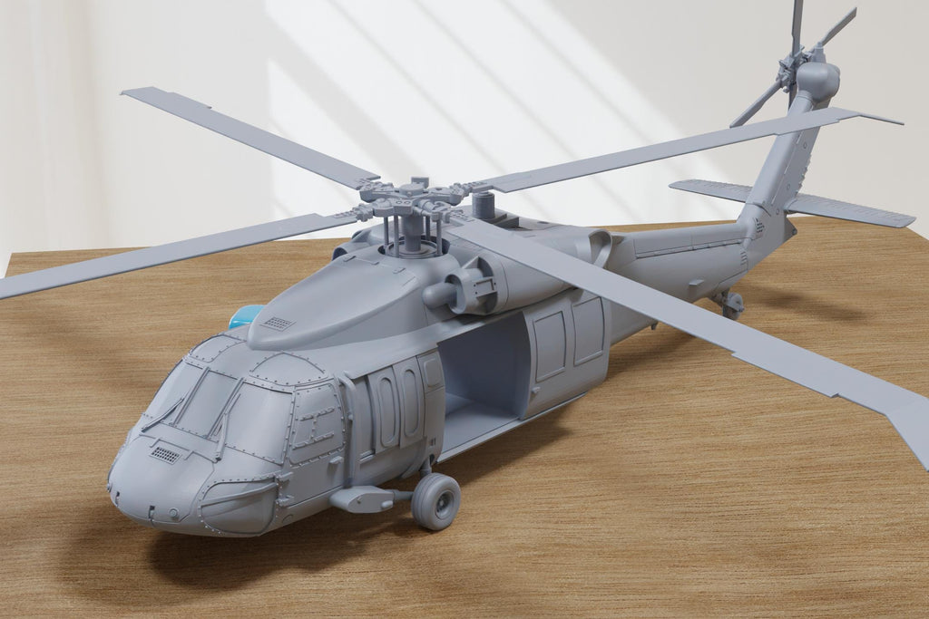 Add the iconic UH-60A Black Hawk to your tabletop battles! Known worldwide for its role as a troop transport and multi-mission workhorse, the Black Hawk has seen action from the Cold War to modern-day conflicts. This highly detailed 3D printed miniature captures the rugged design of the UH-60A, available in two versions: